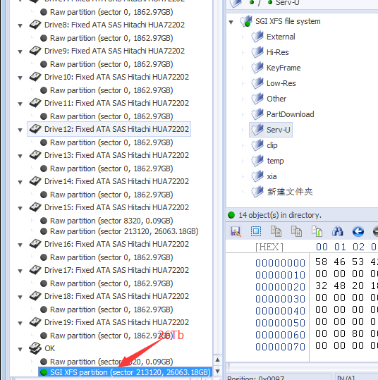 | 数据恢复过程 | 客户告知4块盘报错,15个盘做的RAID5 一个热备盘,客户把热备盘格式化过一次,替换了一个新盘没有成功,今天16个盘都分析了一次发现之前一直放着的热备盘一直没有使用到可以直接排除,客户告知我们12号盘先报错,分析以后发现是2号盘最先报错,后面其他盘陆续跟着报错,2号盘有大量坏道。NAS存储大部分都使用的是Linux系统常见格式EXT2.3.4,今天这个使用的是XFS格式, XFS比较少见很多同行还是不会分析XFS,我公司无视非windows系统专业分析各种特殊RAID阵列,在云南地区唯一专业服务器RAID恢复公司,一直得到广大客户的认可。 |