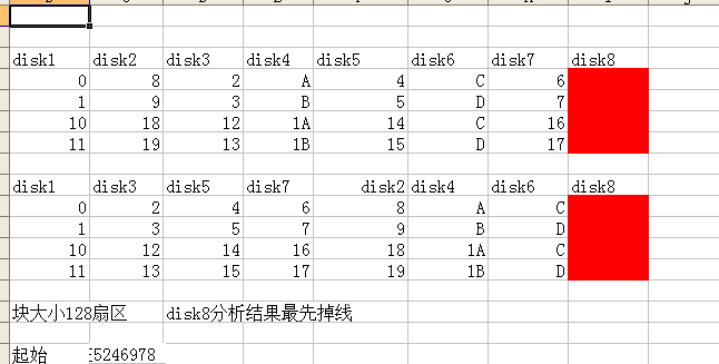 下图是我们分析的参数可以得出盘的顺序块大小,Linux系统特殊的比较有意思,他的起始扇区很多时候都不在0扇区判断方法目前有3种方法,起始扇区分析不出数据就没有机会去看到。有时候同行拿着客户的硬盘顺序组不出数据关键就在这一步。