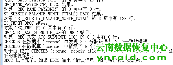 后来我们用其他MDF碎片重组软件测试恢复效果直接没有机会使用dbcc checkdb 因为碎片链接情况复杂软件在智能也无法去判断