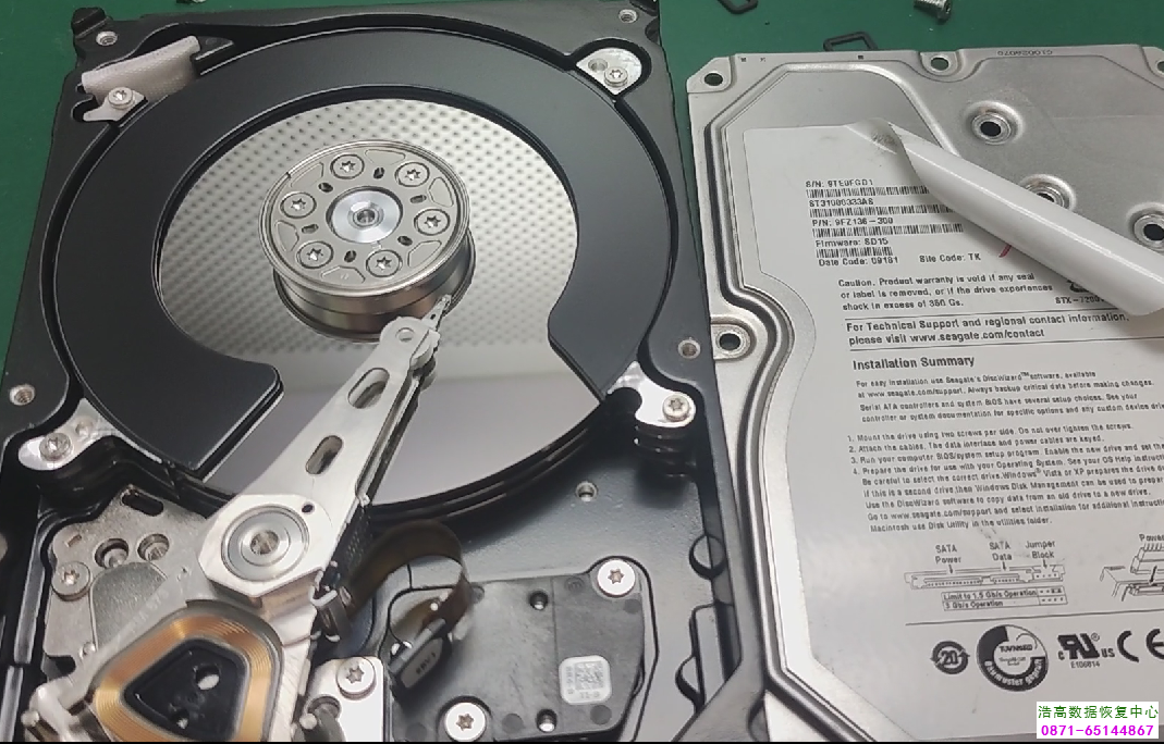 昆明盘龙国税局西数500G台式机硬盘磁头损坏开盘成功